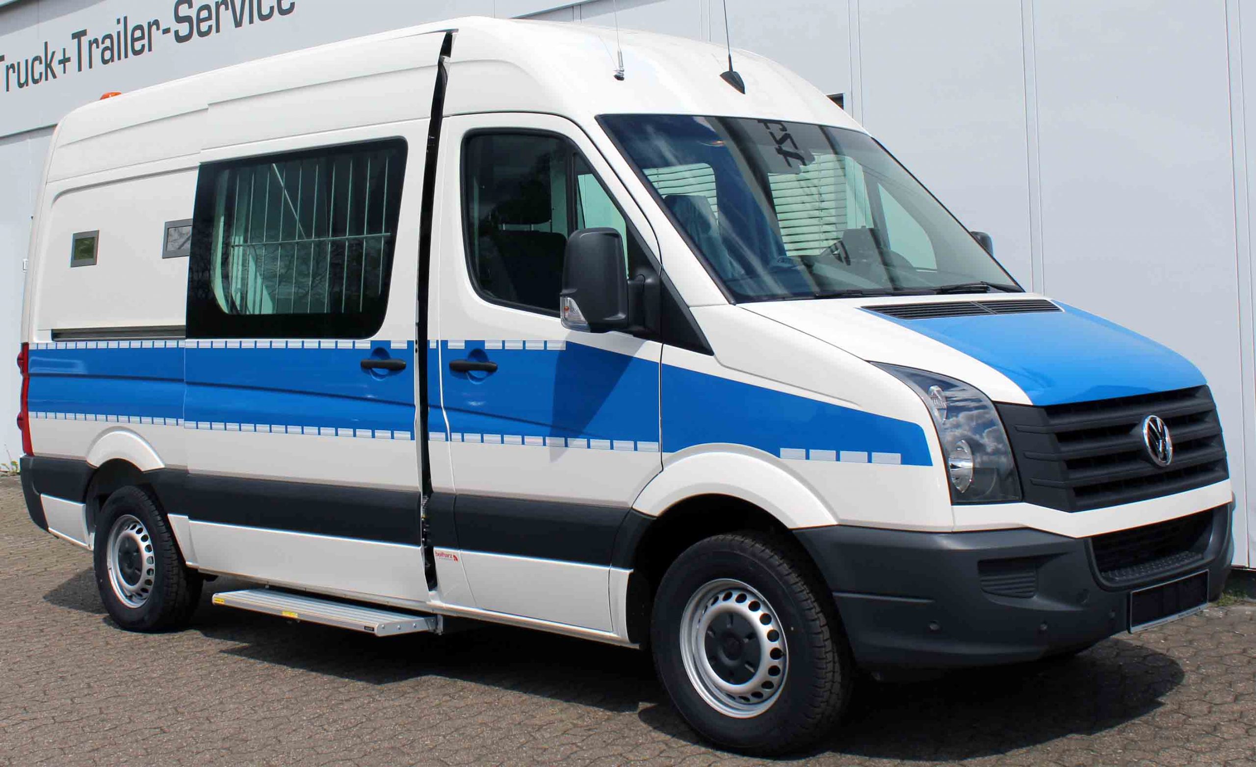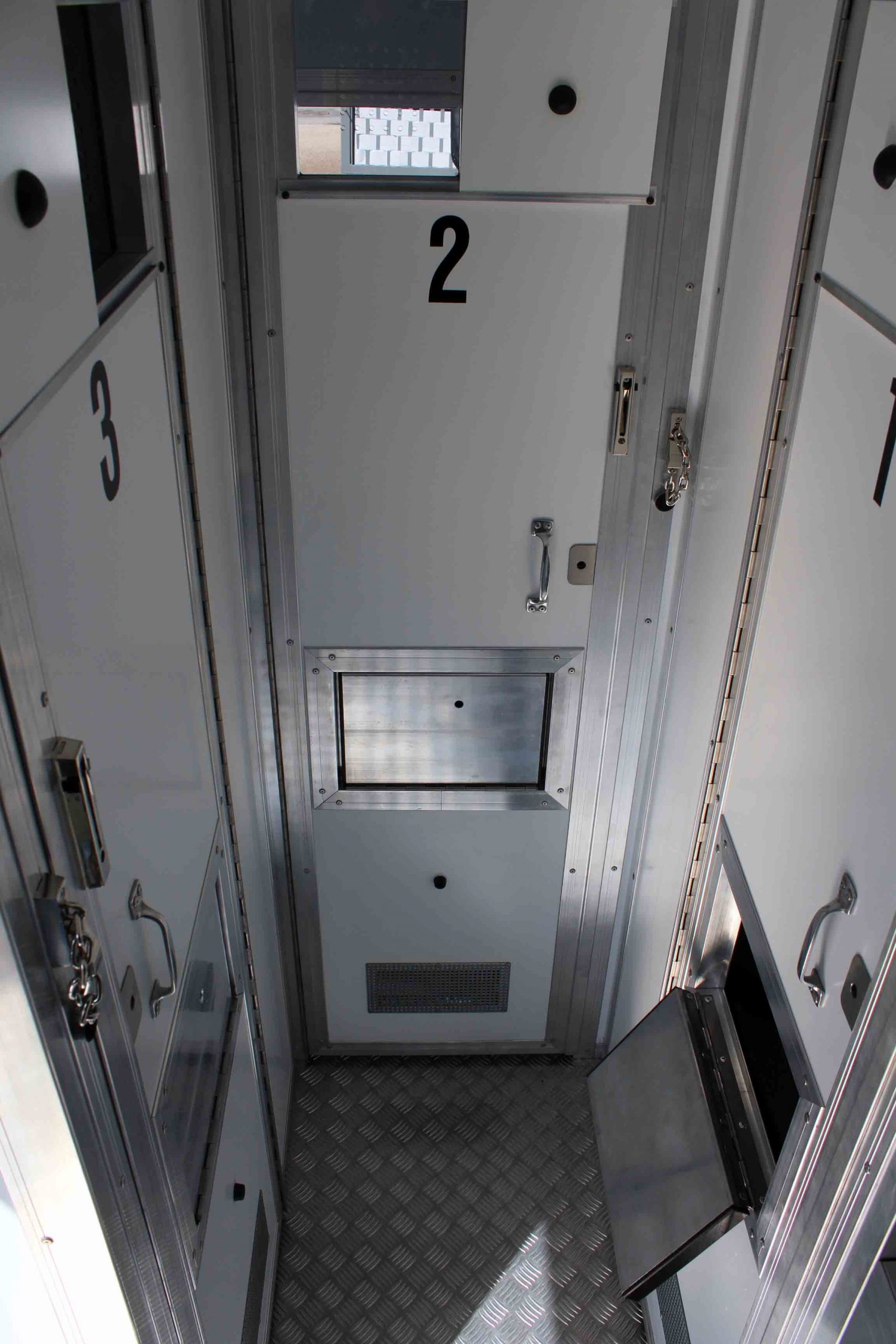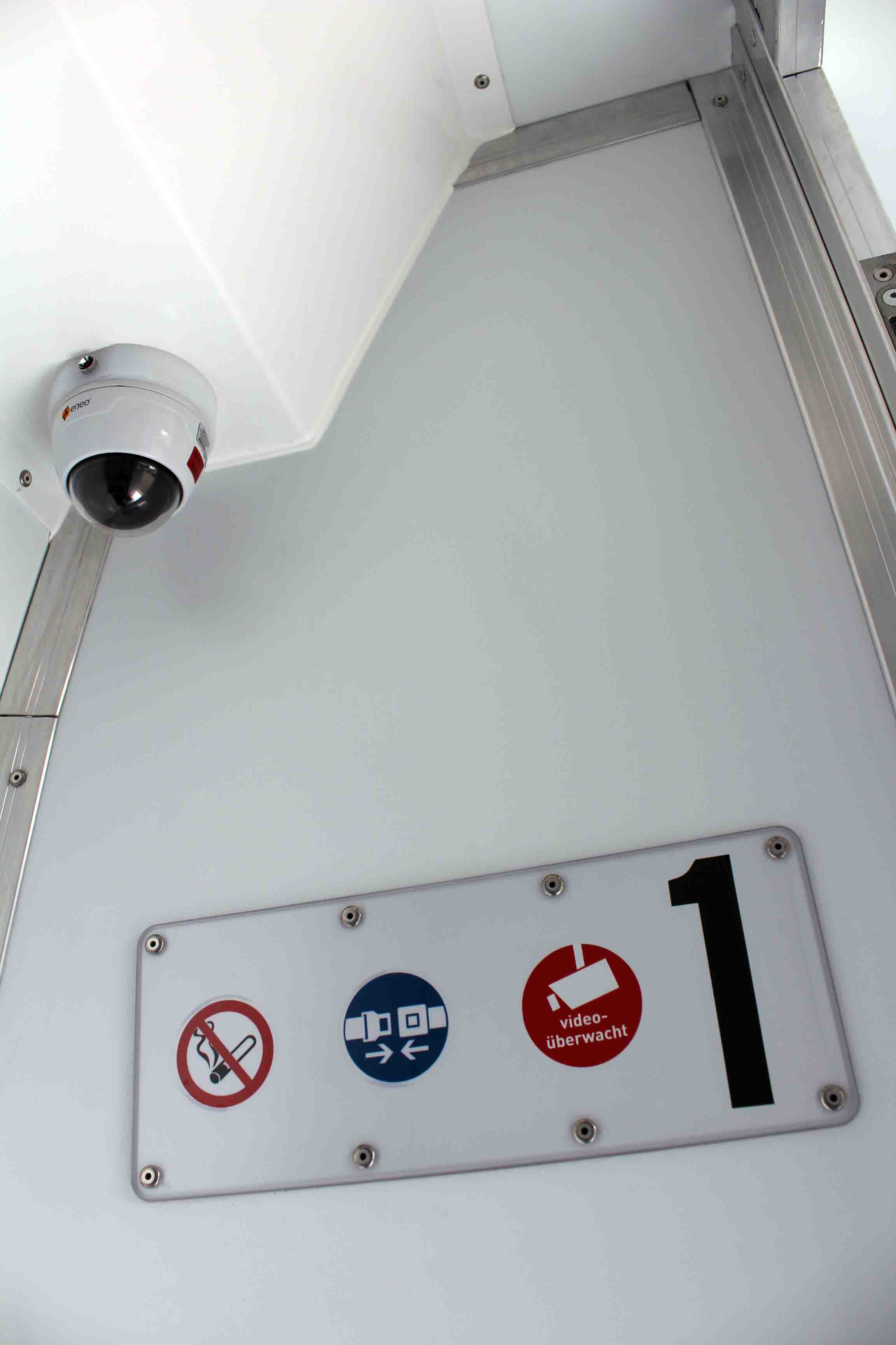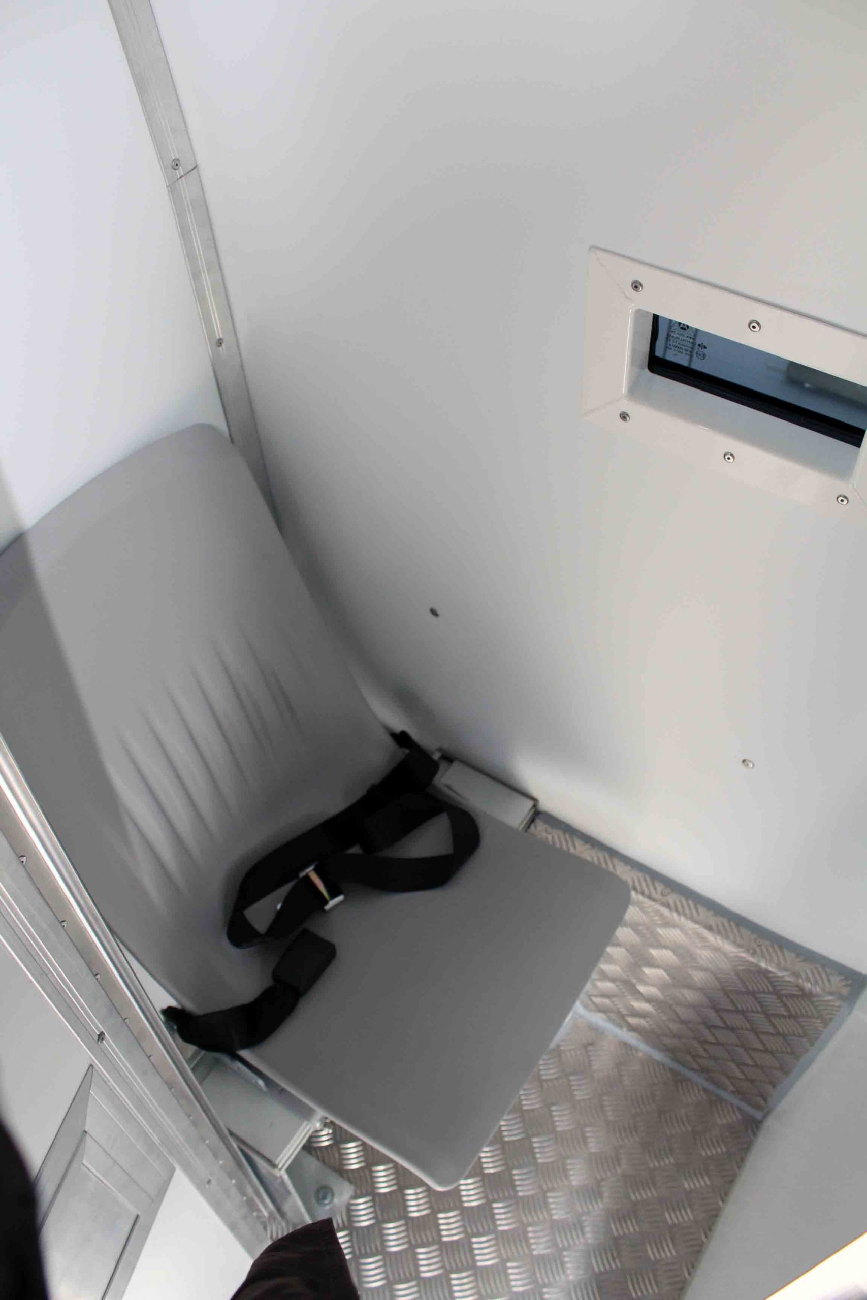 Platz für 3. Begleitperson. Staufächer im pberen Bereich. Trennungstüre zum Zellenbereich.